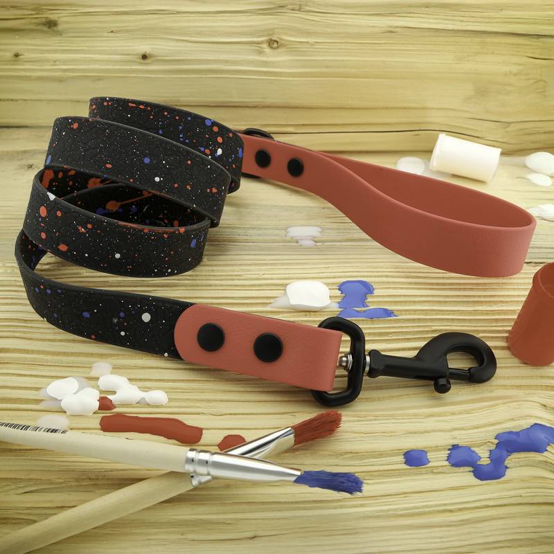This is an acrylic paint för leather or PVC/BioThane. Paint lovely pattern or write your pets name etc. Use Angelus acrylic finisher adter for extra protection.