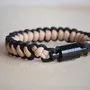 Magnetic lock size 15x35 mm. Hole size 5 mm. Fits well with our leather and paracord, use for keys or flashlight. Very strong magnet, can hold 1,5 kg. It has a low weight, only 14 gram.