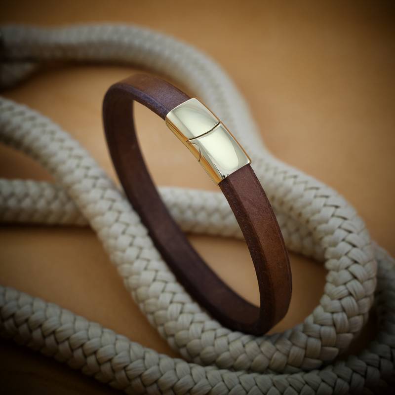 Magnetic lock size 6x11x25 mm. Hole size 5x10 mm. Fits well with our leather and paracord. Slightly bent to fit a perfect. It has a low weight, only 7 gram.