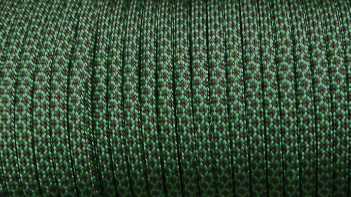 Paracord manufactured in the USA, 100% Nylon. Ultimate tensile strenght: 550 lbs / 250 kg. Number of inner threads: 7 . Thickness: 3,2-4 mm.