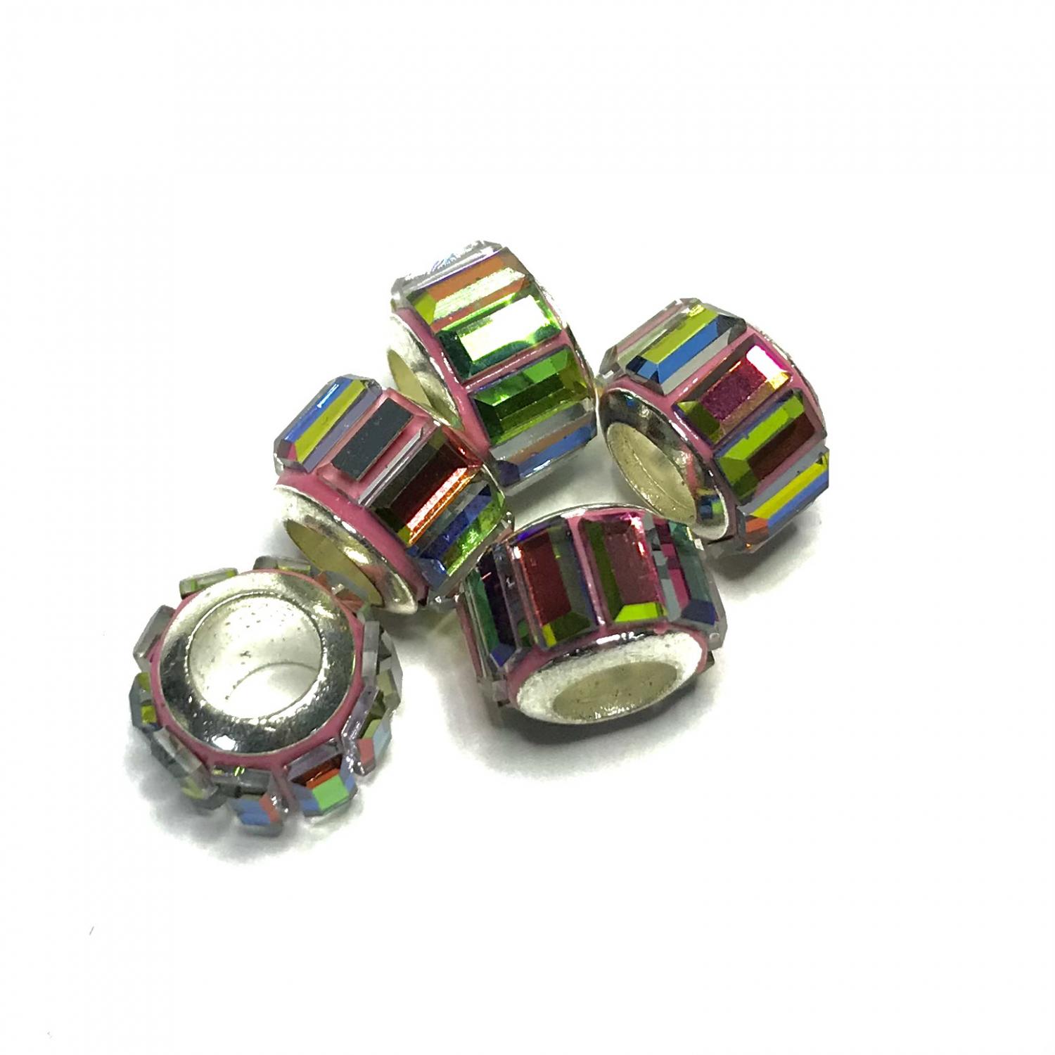 Glaspärla med silverfärgad metall inuti. Pärlorna skimmrar i olika färgnyanser. Stort hål passar paracord och lädertråd till olika ändamål. 7x10 mm. hålstorlek 5 mm.