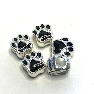 Bead Dogpaw silver color with black pawprint. 5 pcs.