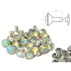 Chez. Rhinestone. Size 6x8 mm. Nickel plated brass. For these rivets, you only need hammer, mandrel and a softer surface to merge. Use for leashes, belts, decoration etc.