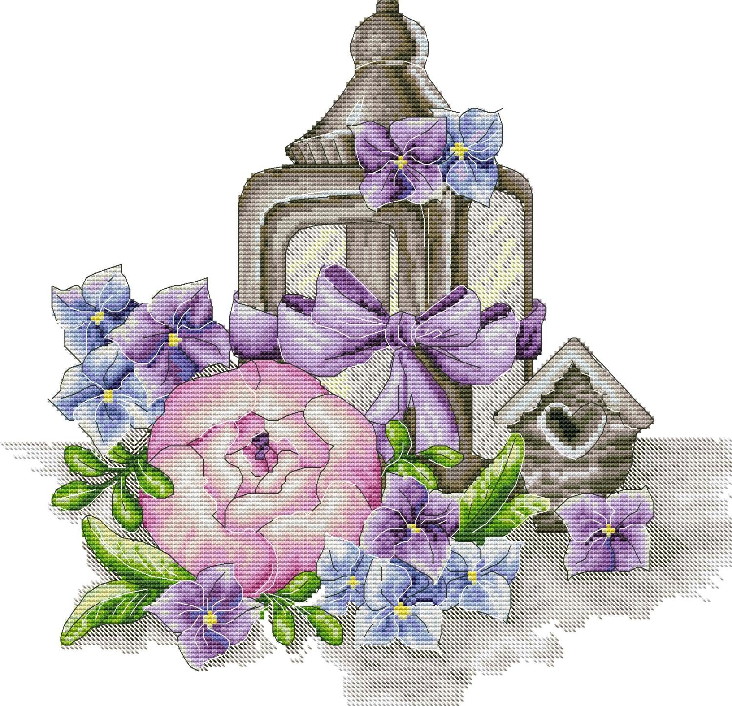 1 st. Broderi Lanterna & Blommor.