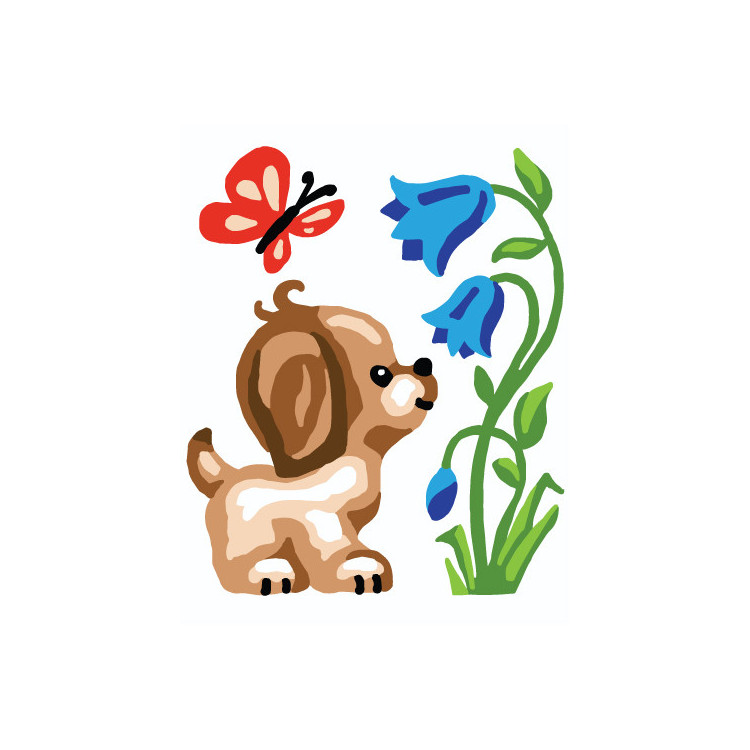 Broderi kit Tryckt Canvas "Valp" 14x18 cm.