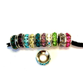 Storlek ca.4x9mm. Hålstorlek ca.4 mm. Rhinestone Spacer Beads, Grade A, Gnistrande rondell. Platinum metal color. Vilken färg som kommer i påsen avgör slumpen. En läcker pärla i som kan användas på utställningskoppel, hundhalsband, nyckelringar, m.m. Inkludera i arbeten med paracord, rattail, satintråd eller läder.
