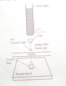 Crystal clear Storlek 4x5mm. Nickel plated brass. A=3 mm. B=5 mm. C=4 mm. Nitar du bara behöver hammare , dorn och ett mjukare underlag för att slå ihop. Använd till koppel, bälten, dekoration m.m. För att slå ihop dessa nitar använd gummiskiva eller något underlag som ej är så hårt att det skadar niten. Se förslag på verktyg. Gummiplatta