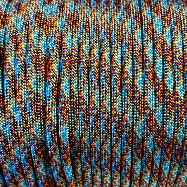 Paracord tillverkad i USA, 100% Nylon. Brottstyrka 550 lbs. 7 innertrådar. Tjocklek 3,2-4 mm.