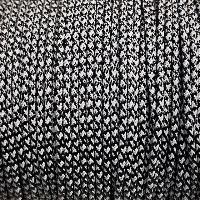 Paracord super reflex 50/50 mellan reflextråd och enfärgad tråd, tillverkad i Europa. nylon 100% Brottstyrka ca.100-125 kg,. Tjocklek ca. 2-2,4 mm. Denna tråden har 3 st. innertrådar. Detta är en tunnare paracord som man kan göra lite tunnare arbeten ,med. Går också bra att använda tillsammans med andra tjocklekar eller som dekorationstråd. Är smidig och fin att arbeta med och lätt att knyta. Ger en otrolig reflex, så nyckelringar funkar jättebra.