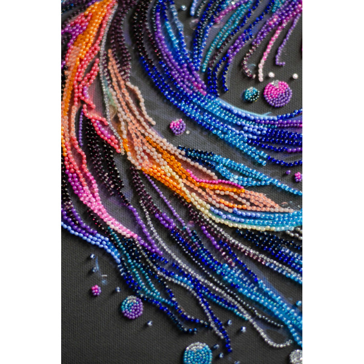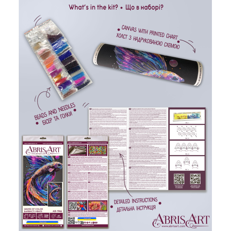 Ett under bart motiv med tryckt bakgrund och en färgglad fisk som dekoreras med pärlor i olika färger. Kroppen är fylld av pärlor, ett ljuvligt konstverk. Allt du behöver ingår, det finns en liten QR-kod som du kan använda om du vill se en film på hur man gör. Pärlor, nål, tryckt canvas och instruktioner.