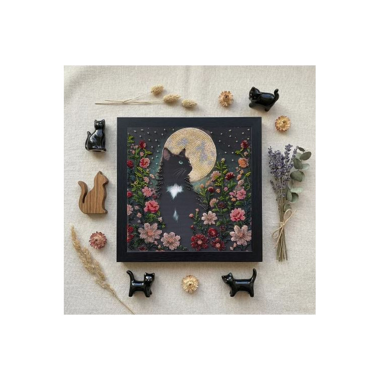 Ett under bart motiv med tryckt bakgrund och en söt katt bland blommor med pärlor i olika färger. Blir ett ljuvligt konstverk när det är färdigt. Allt du behöver ingår, det finns en liten QR-kod som du kan använda om du vill se en film på hur man gör. Pärlor, nål, tryckt canvas och instruktioner.
