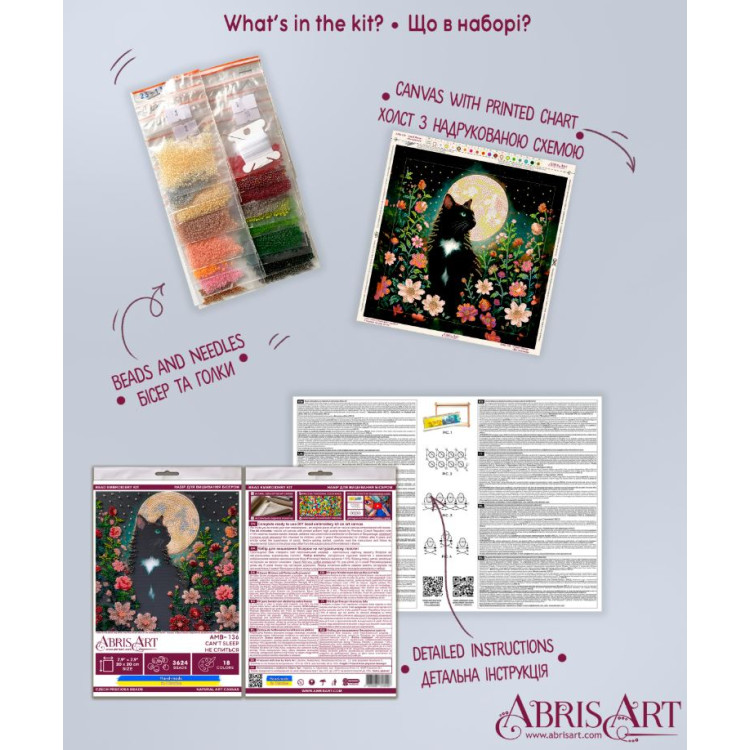 Pärlbroderi "Can’t Sleep" 20x20 cm.