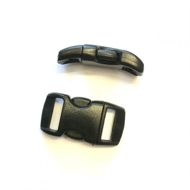Lås i plast. Inner bredd 10 mm. Totalbredd. 14 mm. längd. 30 mm. Lite böjd för att passa handleder eller runt halsen på både katter & hundar.